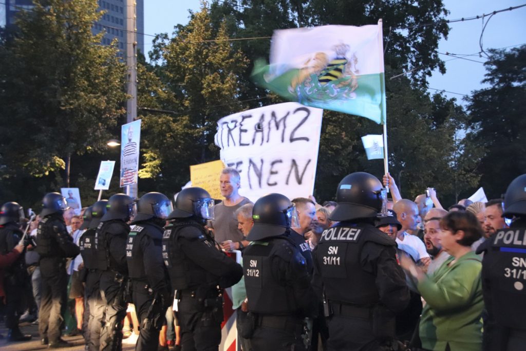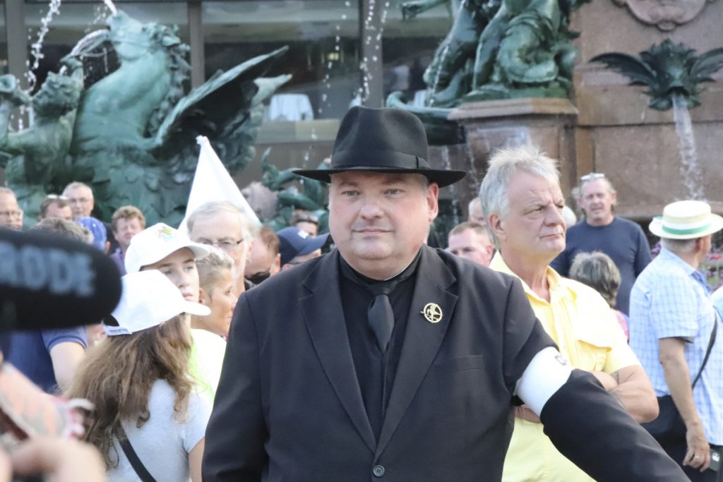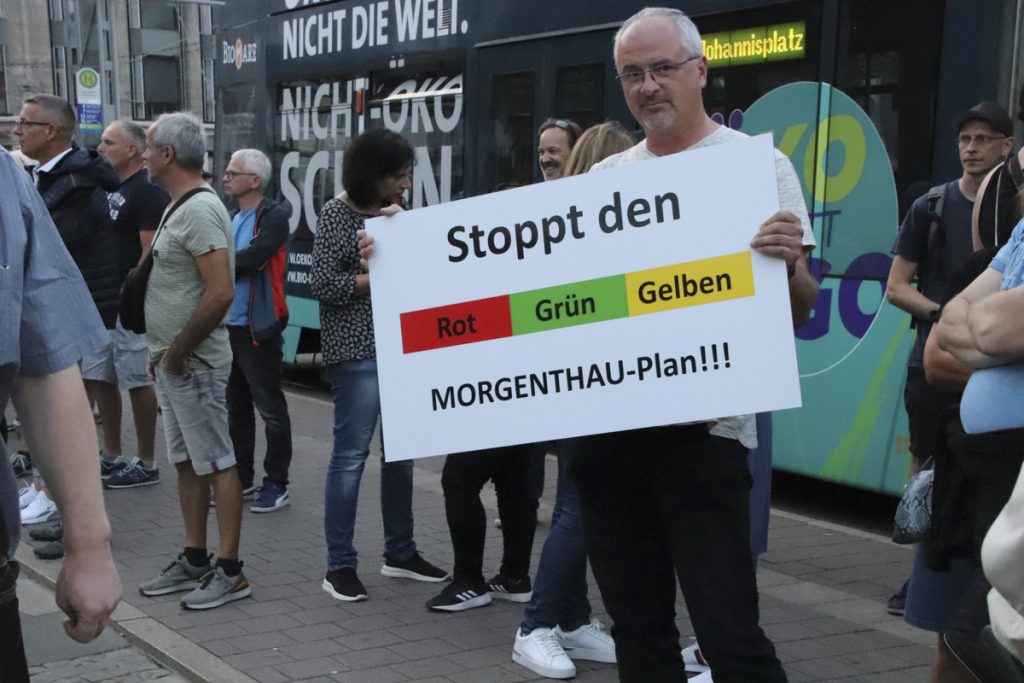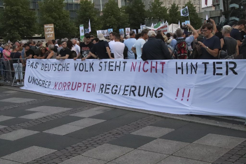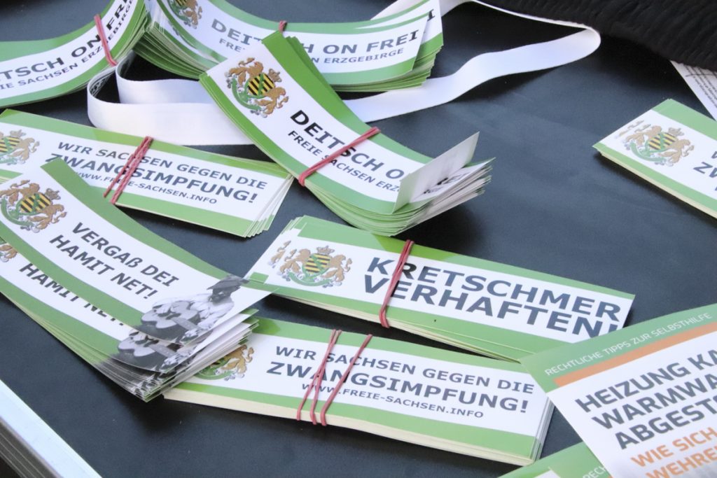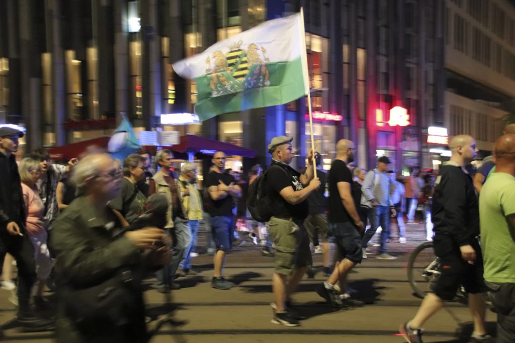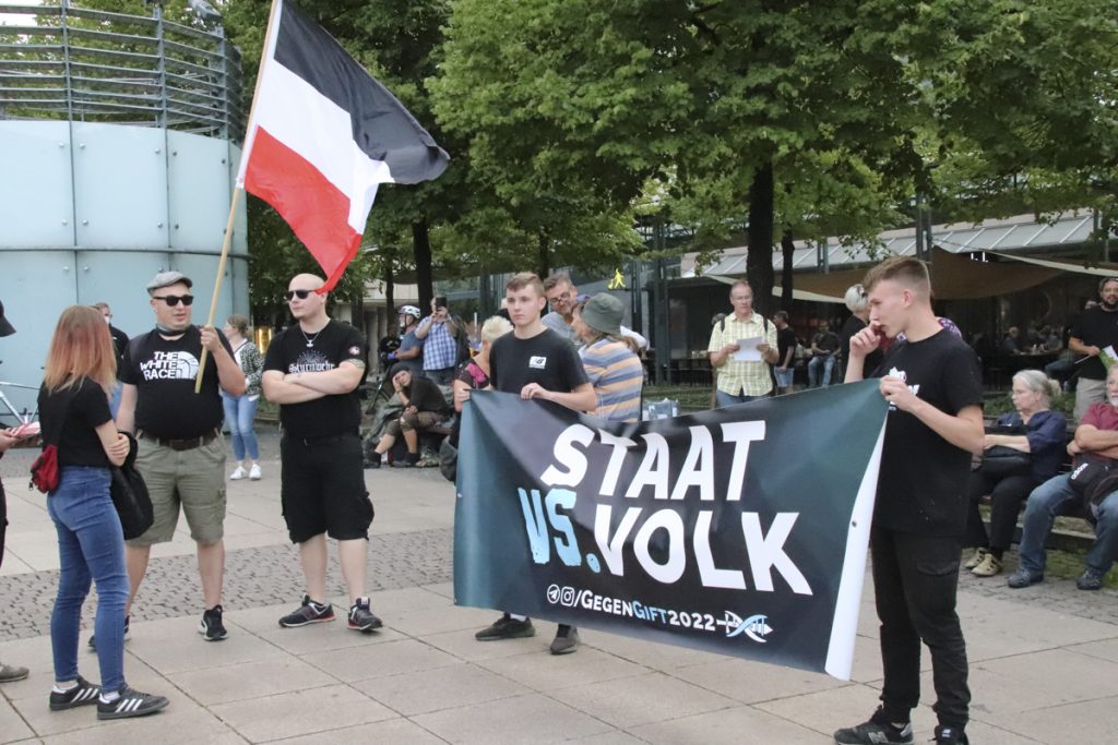Parallel dazu hatte die rechtsextreme Kleinstpartei „Freie Sachsen“ ebenfalls zu einer Montagsdemo auf dem Augustusplatz aufgerufen. Schließlich demonstriert die rechte und verschwörungsideologische Szene nun schon seit zwei Jahren immer wieder montags. Für sie sollte die Demonstration am Montag ein Fanal werden, das den heißen Herbst, beziehungsweise den „Wutwinter“ einläuten würde. An dessen Ende der Systemsturz stehe, so ihr frommer Wunsch.