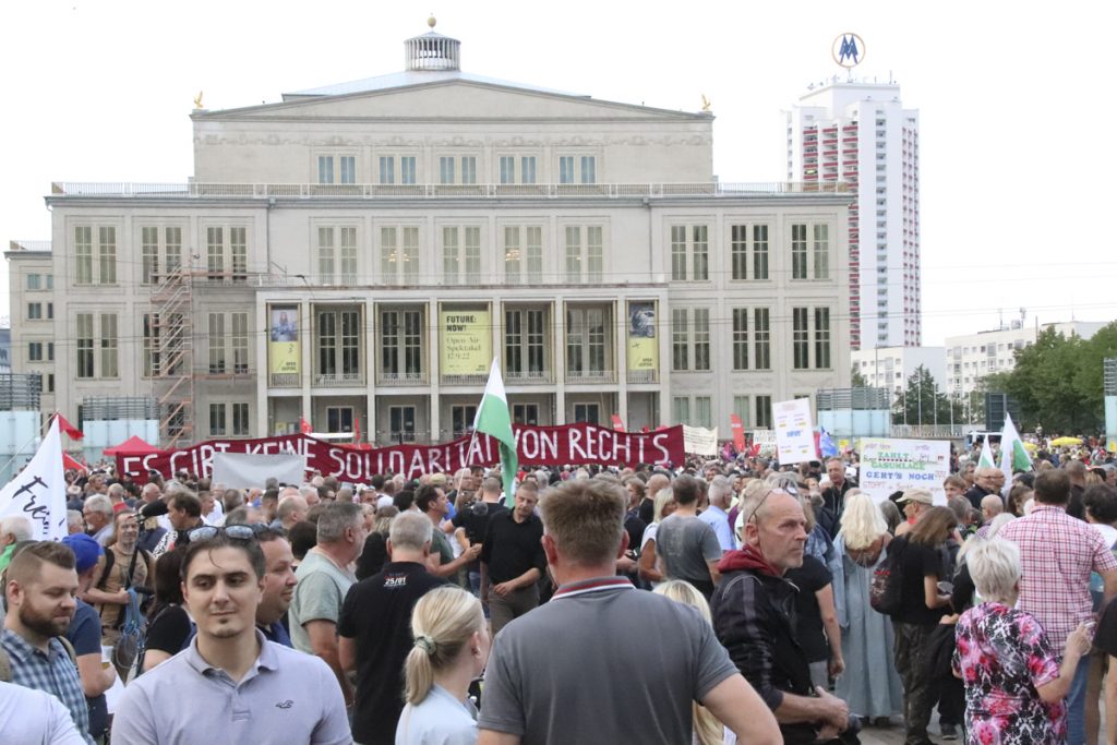 Insgesamt kamen rund 4.000 Menschen zur Linken-Demonstration, zur Demonstration der „Freien Sachsen“ erschienen etwa 2.000. Beide Demonstrationen fanden parallel auf dem Augustusplatz statt, doch durch Absperrgitter waren sie recht gut räumlich voneinander getrennt.
