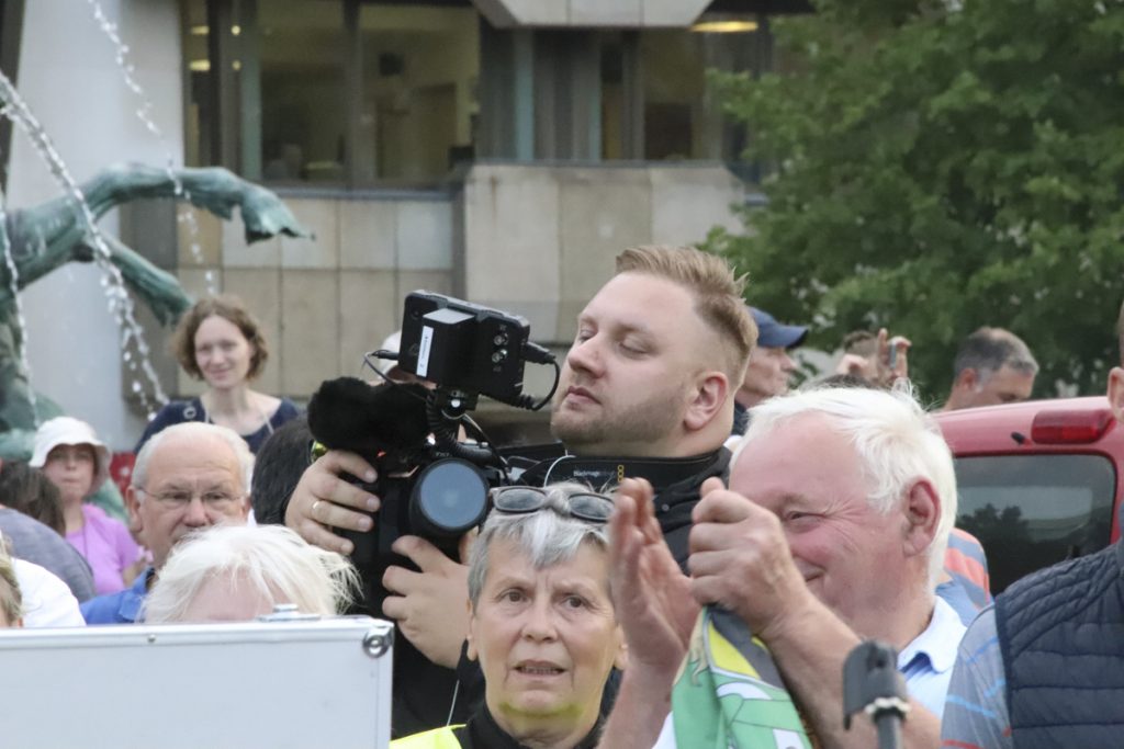 Auffällig war die große Anzahl rechter Medienaktivist*innen, so gaben sich unter anderem Nikolai Nerling („Der Volkslehrer“), Sebastian Schmidtke (NPD), Simon Kaupert („Ein Prozent“) Sanny Kujath (ehemals „III. Weg“-Kandidat und Praktikant des Neonazis Tommy Frenck) als Journalisten aus. Laut einem Social Media Post von Kujath haben er und Michael Brück, PR-Mann für die „Freien Sachen“ mit einer beachtlichen Neonazi-Kariere in Dortmund, nach Beendigung der Kundgebung noch linke Aktivist*innen gejagt.