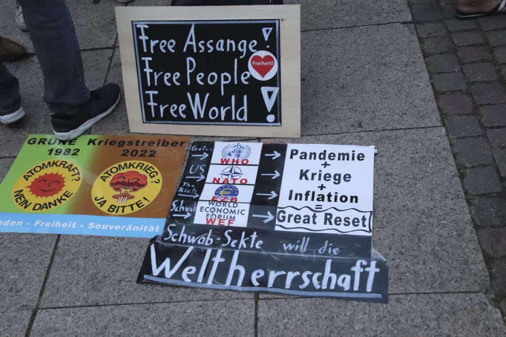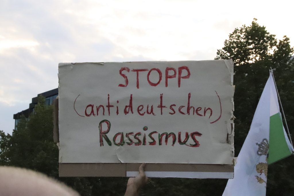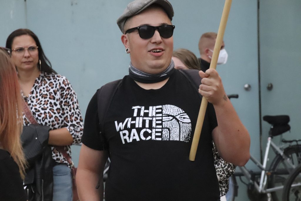 Die Gespräche der Demonstrationsteilnehmer*innen drehten sich um Hass auf „die da oben“, um antisemitische Verschwörungserzählungen, an die sie glauben, ihre Wut auf „die Antifa“ und ihrer rassistischen Vorstellungen von Gesellschaft. Eine kleine Gruppe People of Colour, die am Stand der „Freien Sachsen“ das Infomaterial inspizierte, wurde mit rassistischen Äußerungen und Beleidigungen von der Kundgebung gejagt.