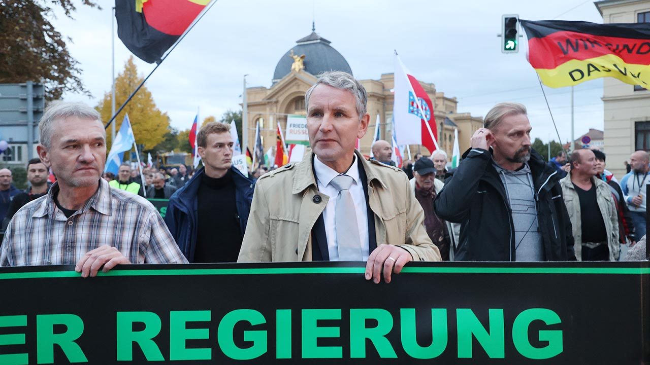 Organisiert wurde der Protest vom Thüringer Neonazi Christian Klar und Frank Haußner, Sprecher der extrem rechten Vereinigung „Patrioten Ostthüringen“. Auf der Bühne stand Martin Kohlmann. Er ist der Kopf der Bewegungspartei „Freie Sachsen“, ein rechtsextremes Erfolgsrezept aus Sachsen, das nun auch auf andere Bundesländer übertragen werden soll. Auch Jürgen Elsässer hielt in Gera eine Rede. Er ist Chef des rechtsextremen und verschwörungsideologischen Propaganda-Mediums Compact. Am Montag sprach er auf der Bühne über einen angeblichen „Bevölkerungsaustausch“ und die Energiekrise. Unzweifelhaft war jedoch ein anderer der große Liebling des Publikums: der AfD-Faschist Björn Höcke. Er ist die Führungsfigur des klar rechtsextremen Lagers innerhalb der AfD und bindet große Teile der ostdeutschen AfD-Kernwählerschaft an seine Person. Seine Rede war wohl die erschreckendste.