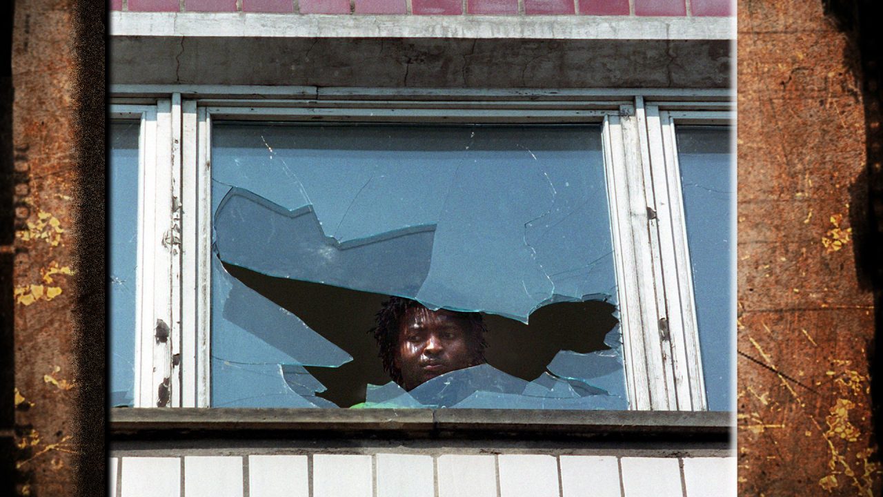 A long, grey industrial apartment block with balconies: the windows have been destroyed, city residents are in front of the building howling. From a broken window, a man from Mozambique looks at the crowd in shock. In September 1991, these images circulated around the world. It was the hateful face of a reunited, racist Germany.