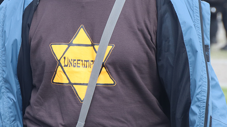 In vielen deutschen Städten fanden am Wochenende wieder Demonstrationen gegen die Corona-Schutzmaßnahmen statt. So auch in Berlin. Hier waren am Samstag 19 Demonstrationen angemeldet. Lautstark, auf Schildern und auf T-Shirt-Aufrucken verbreiteten die Menschen auch in der Hauptstadt allerhand wirrer Verschwörungsmythen und scheuten nicht vor Holocaust-Relativierung zurück.