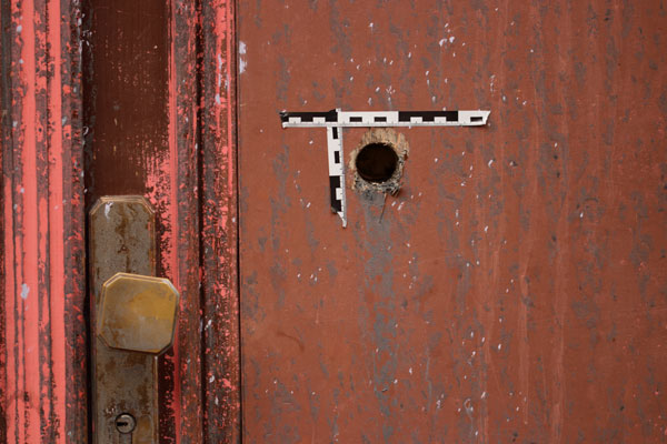 Unbekannte bohrten ein Loch in die Tür. Quelle: Thomas Schade