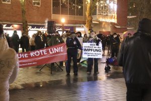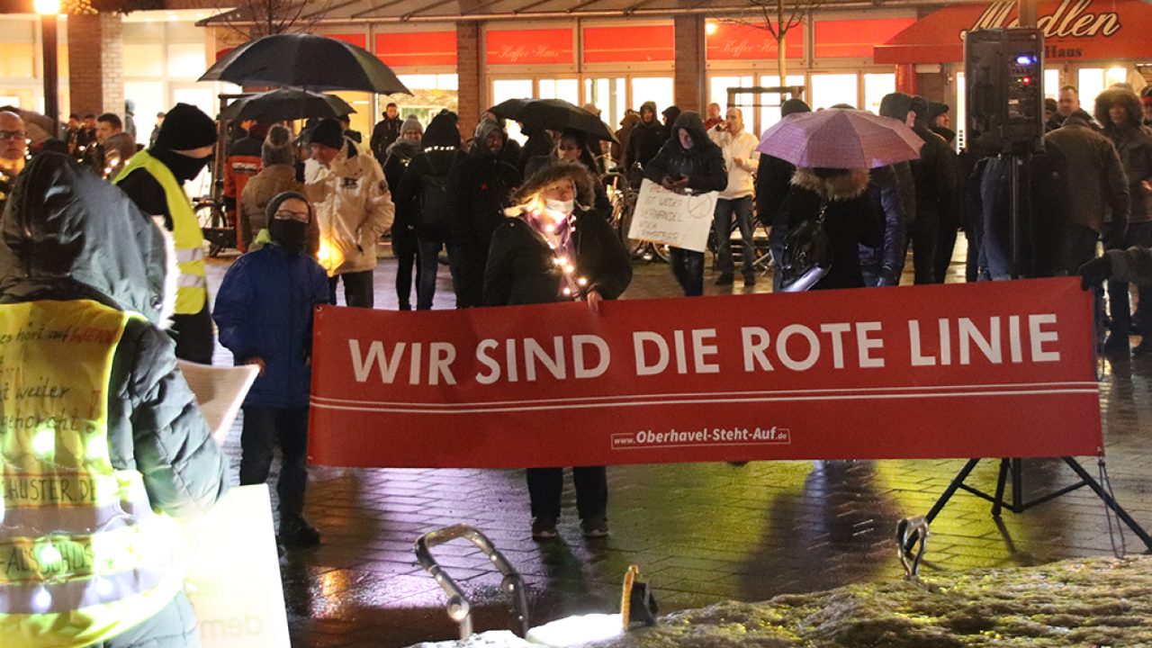 Am Mittwoch, den 5. Januar, demonstrierten rund 250 Impfgegner:innen in Hennigsdorf in Brandenburg. Im Gegensatz zu den bundesweit stattfindenden „Querdenken“-Demonstrationen, die als „Spaziergänge“ geframed werden, war dies eine offiziell angemeldete Demonstration. Die Polizei war entsprechend gut vorbereitet.