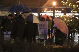 Nachdem der Demonstrationszug zwischen 18.30 und 20 Uhr mit Kochgeschirr und Tröten lärmend durch Wohnviertel zog, kam der Demonstrationszug zur Abschlusskundgebung auf den Postplatz zurück.