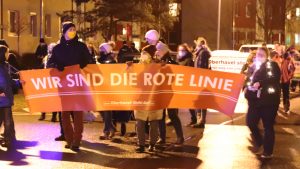 Angeblich handele es sich bei „Oberhavel steht auf“ um eine „friedliche, demokratische, überparteiliche Bewegung, in der Extremismus, Gewalt, Antisemitismus und menschenverachtendes Gedankengut keinen Platz haben“. Jegliche Parteizugehörigkeit wolle man auf der Demonstration nicht sehen. Und so war auf einem Banner der AfD-Brandenburg das Parteilogo abgeklebt.