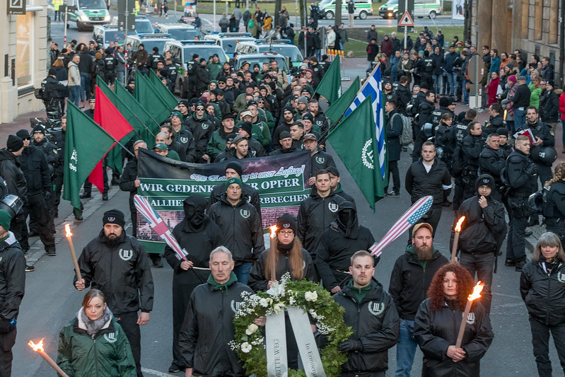 Während der Drang nach Kriegs- und Schusswaffen in der rechtsextremen Szene ungebremst hoch bleibt, wurde durch Covid-19 die Demonstrationstätigkeit der extremen Rechten im Freistaat merklich ausgebremst. So fiel im November die zentrale Demonstration der neonazistischen Kleinstpartei „Der III .Weg“ in Wunsiedel flach. Die Neonazis sagten von sich aus ab, weil ihnen die coronabedingten Beschränkungen missfielen. Die größte extreme rechte Demonstration jenseits der Corona-Proteste fand Mitte Februar – und somit vor den Corona-Beschränkungen – in Bamberg statt. 120 Neonazis demonstrierten hier im Rahmen der jährlichen „Dresden-Kampagne“ durch die oberfränkische Universitätsstadt. Da Bamberg von den (Luft-)Kriegshandlungen im Zweiten Weltkrieg kaum betroffen war, zeigt das, wie beliebig diese Kampagne im Kern ist.