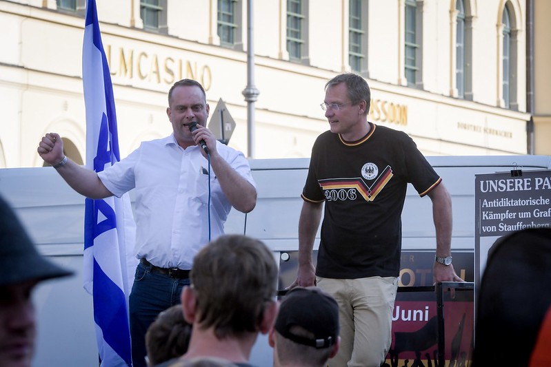 Wortführer*innen der Proteste waren Rechtsextreme in Bayern nur an wenigen Stellen, etwa in Deggendorf mit dem früheren NPD-Bundesvorstand Ulrich Pätzold an der Spitze, unterstützt von der neonazistischen Kameradschaftsszene. Das Innenministerium nennt noch die Gruppe in Hilpoltstein südlich von Nürnberg. In Murnau wurden die Proteste angeführt von Uwe Erfurth, der wegen Reichsbürgerverdacht seine waffenrechtliche Erlaubnis verlor. Seine Lebensgefährtin erklärte bei einer Kundgebung in Schongau, sie habe ihren Personalausweis abgegeben und stattdessen eine für Reichsbürger*innen typische Lebenderklärung verfasst.