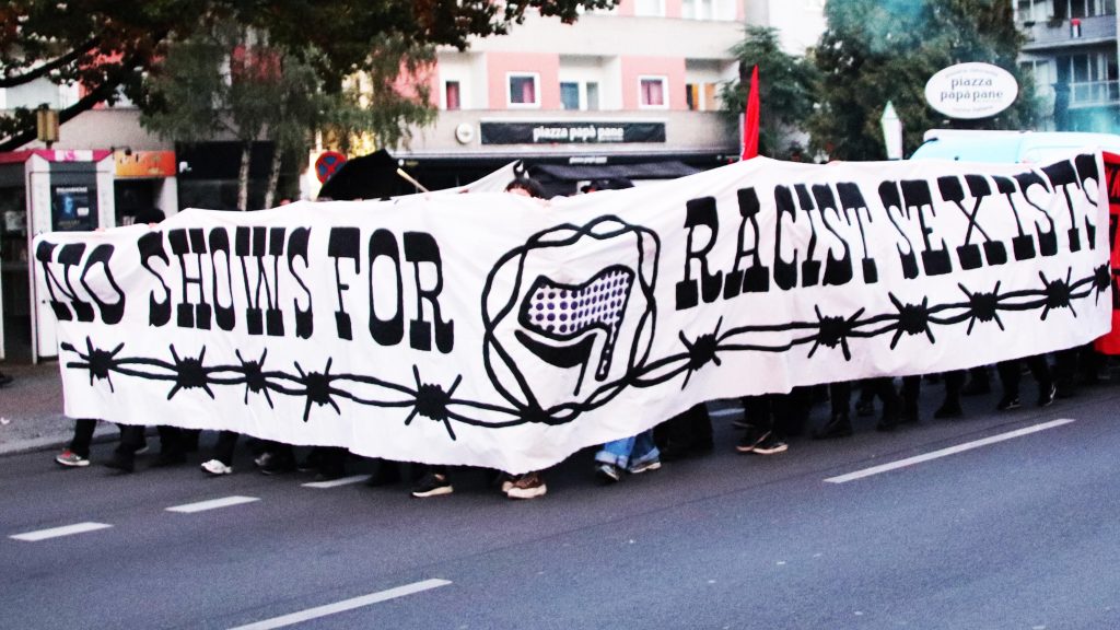 Am Donnerstag, den 29. September 2022, versammeln sich gegen 18 Uhr etwa 300 feministische Aktivist*innen auf dem Mehringdamm, Ecke Yorkstraße, in Berlin. Auf ihren Bannern ist zu lesen: „No Show für Racist Sexists“, „Smash the Patriarchy“ und „Choke on your Lobster“ – „Erstick an deinem Hummer“. „Wir wissen, wie man Hummer zubereitet“, sagt eine Rednerin wütend in ein Mikrofon, bevor sich der Demonstrationszug in Bewegung setzt. „Das Wasser ist bereits aufgesetzt.“