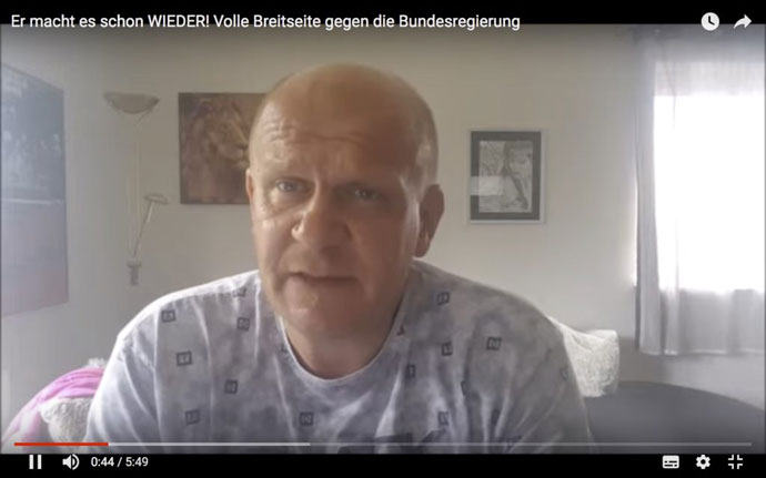 Ein Blick auf die Akteure des „Begleitschutzes“ bestätigt diese Aussage. Neben Mocha tritt der YouTuber Carsten Jahn als Sprachrohr auf. In stundenlangen, tausendfach abgerufenen Videos verbreitet der ehemalige NPDler (2006–2011) aus Radevormwald rechte Verschwörungstheorien. Einen früheren „Piraten“-Politiker und Dokumentaristen der extremen Rechten bezeichnet er als „Nutte(n) des globalisierten Systems“, der „für den Staat“ arbeite. In einem Video hetzt Jahn gegen „die da oben“ und das „Geldsystem“, schwadroniert vom „sogenannten Grundgesetz“, von Zionisten, Rothschild und den „Systemlingen“. Politisch stellt er sich als Mitglied der extrem rechten Minipartei „Haus Deutschland“ vor.