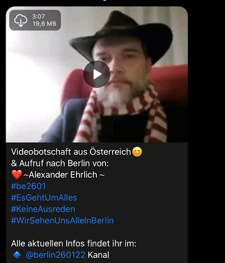 Bei so viel Einsatz für die Rechtsstaatlichkeit ist es für Ehrlich umso bedauerlicher, wenn Rechtsextreme „seine“ Demonstrationen für Gewalt nutzten. Nur deshalb, so berichtet Ehrlich auf einem seiner zahlreichen Telegram-Kanäle, hätten er, Markus Haintz und Michael Scheele sich „zwischen die vermummten Provokateure und die Polizei“ gestellt, hätten „an der Polizeikette zu deeskalieren“ versucht, wollten ins Gespräch gehen, aber die Antwort seinen „Angriffe mit Wasserkanonen“ gewesen – „Ja, die Demonstration wurde ja nicht nur aufgelöst, sondern angegriffen“.