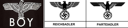 Logo von „Boy London“, Gegenüberstellung Reichsadler und NSDAP-PArteiadler (Quelle: Wikimedia Commons)