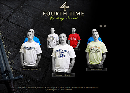 Während über die Beweggründe bei „Boy London“ nur spekuliert werden kann, sieht die Sache bei „Fourth Time“ schon viel klarer aus. Die Brandenburger Marke wirbt auf ihrer Website mit dem Spruch „Die Welt ist im Wandel, das dunkle Zeitalter geht zu Ende. Erkenne und erscheine in neuem Gewand! … und es begann das Vierte Zeitalter!“ Ähnlich der bereits etablierten Marken „Thor Steinar“, „Erik & Sons“ und „Ansgar Aryan“ nutzt auch „Fourth Time“ Symbole der nordischen Mythologie bzw. Motive mit eindeutig zweideutigem Inhalt.
