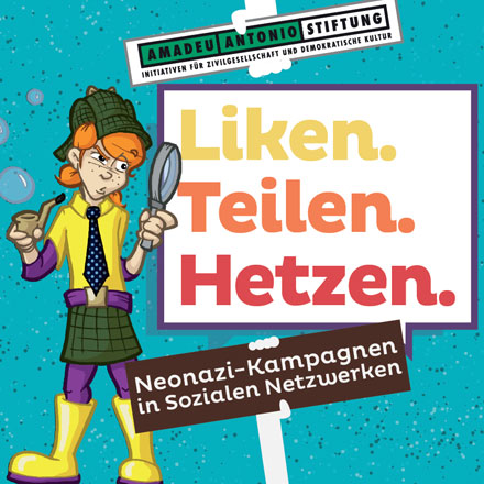 Liken. Teilen. Hetzen.: Nazi-Kampagnen in „Sozialen Netzwerken“ (Publikative.org)Broschüre der Amadeu Antonio Stiftung: Wie Rechtsextreme die Sozialen Netzwerke nutzen (Netzpolitik.org)Broschüre für Jugendliche: „Liken. Teilen. Hetzen. Neonazi-Kampagnen in Sozialen Netzwerken“ (Störungsmelder)Broschüre über Rechtsextreme im Internet (epd)Amadeu Antonio Stiftung informiert in neuen Broschüren über Neonazi-Strategien im Netz und liefert Widerstandsstrategien (AVIVA-Berlin)