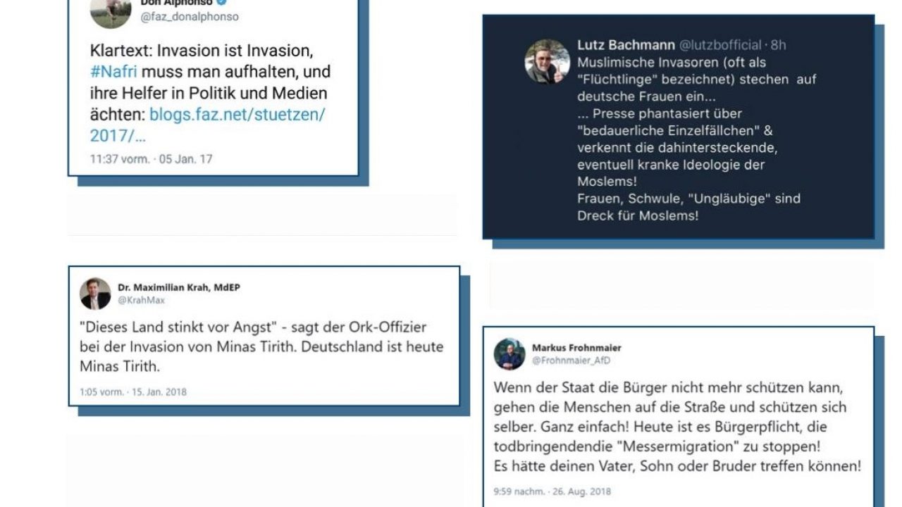 Durch andauerndes Wiederholen des rassistischen und teilweise sexistischen Framings, dass Migranten kriminell oder gar mordlustig seien (der AfD-Bundestagsabgeordnete Markus Frohnmeier schreibt auf Twitter über „die todbringendendie ‚Messermigration‘“ [sic]) oder dass es sich bei Migranten um feindliche „Invasoren“ handle, festigen sich diese Assoziationen in den Köpfen der Öffentlichkeit.Dies ist ein Grund, warum rechts-alternative Meinungs-macher*innen ihre Schlüsselthemen auf ein paar eingängige, provokante Kernansichten reduzieren und diese dann häufig wiederholen. So weist das AfD-Strategie-Handbuch ausdrücklich darauf hin, dass für die Imagebildung der Partei „nur wenige, sorgfältig ausgewählte und kontinuierlich bespielte Themen von Bedeutung“ seien.