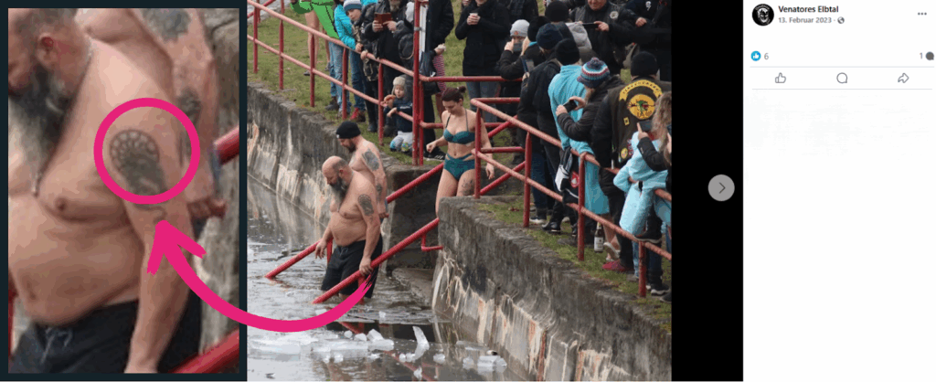 René Jurisch tritt als AfD-Kandidat bei der Oberbürgermeisterwahl am 7. September an. Parteimitglied ist er aber nicht. Denn eigentlich ist er selbst der AfD zu krass. Um die Jahrtausendwende war er in der NPD aktiv. Zu dieser Zeit gründete er auch einen „Verein zur germanischen Brauchtumspflege Schwarze Sonne Meißen e.V.“. Die Schwarze Sonne galt schon damals als Erkennungszeichen der Neonaziszene und Ersatz für das verbotene Hakenkreuz. Und Jurisch trägt sie offenbar bis heute stolz und öffentlich auf dem Oberarm, wie beispielsweise auf dem Profil seines Motorradclubs beim Eisbaden 2023 zu sehen: