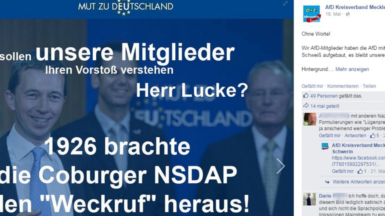 Im Mai machte AfD-Gründer Bernd Lucke öffentlich, was allen Beobachter_innen (und Wähler_innen) schon lange klar war: Das angeblich wirtschaftsliberal-demokratische Außenbild der Partei ist nicht zu halten. Die rassistischen und demokratiefeindlichen Äußerungen, die Kontakte in rechtsextreme Spektrum, die „relativ vielen Einzelfälle“ (Lucke 2014) fügten sich zu einer solchen Rechtsaußen-Flut zusammen, dass Bernd Lucke einen „Weckruf“ an seine Mitglieder schickte – was ihm gelang, obwohl seine Kontrahent_innen Frauke Petry und Konrad Adam seine Email-Adresse sperrten. Im „Weckruf“ versuchte er das Bild zu etablieren, es gäbe einen anständigen Kern bei der AfD, den Lucke im „Weckruf“-Verein bündeln wolle, und dann die Rassist_innen, Rechtspopulist_innen und NPD-Freunde, die er so loszwerden gedachte. Dumm nur: der Rechtspopulismus ist der AfD so inhärent, dass das wirtschaftsliberale Vorzeigemitglied der AfD, Hans-Olaf Henkel, erst mal in gutem Diktatorensprech formulierte, die Partei müsse von „Elementen gesäubert“ werden, um dem Rechtsextremismus Herr zu werden. Selbst die „Weckruf“-Vokabel hat leider einen unschönen Beigeschmack: So hieß die erste NSDAP-Zeitung in Coburg, die 1926 gegründet wurde. Kurios: Diesen Aspekt berichteten nicht nur politische Gegner_innen, sondern auch der AfD-Kreisverband Mecklenburg-Vorpommern, offenbar nicht an der „Weckruf“-Initiative interessiert , bringt dies argumentativ gegen ihren eigenen Parteivorsitzenden in Stellung, die sind (vgl. SVZ).