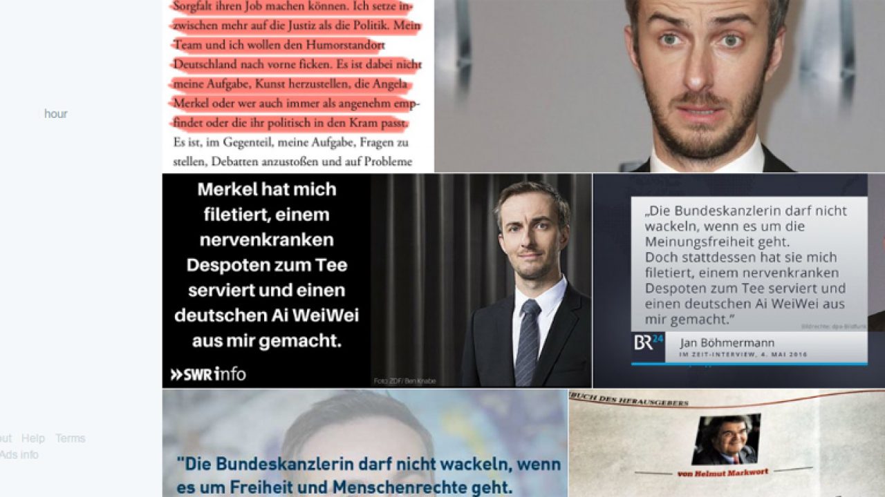 Im April 2016 kam man im Internet (und in den Medien) nicht an Jan Böhmermann, seinem "Schmähgedicht" und der Kunstfreiheitsdebatte vorbei, die leider größtenteils ohne Distanzierung von rassistischen Abwertungen geführt wurde. (Quelle: Screenshot Twitter 04.05.2016)