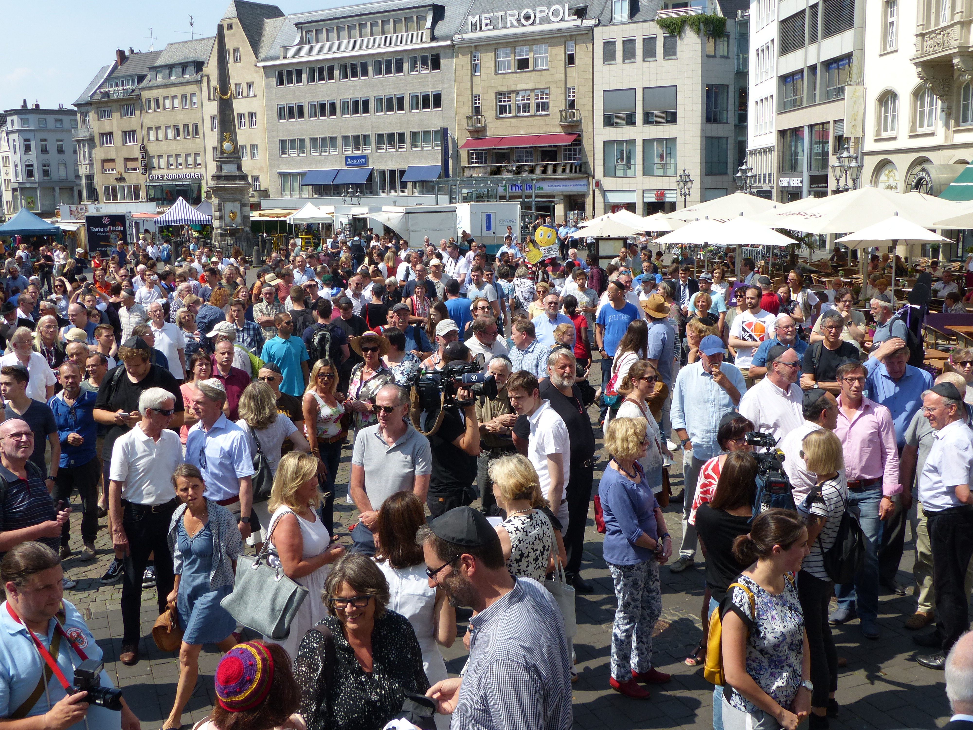 Es waren deutlich mehr Menschen gekommen als erwartet: 750 Personen, viele mit Kippa, hatten sich auf dem Bonner Marktplatz vor dem Alten Rathaus versammelt. Sie protestierten gegen einen antisemitischen Übergriff auf den israelischen Philosophieprofessor Jitzchak Jochanan Melamed.