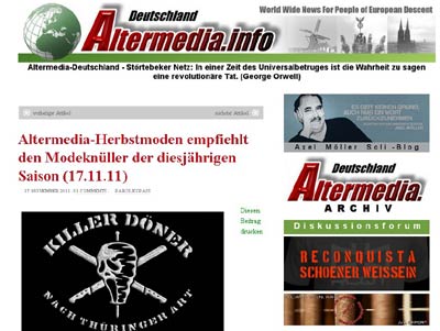 Altermedia also feiert die neueste Designidee von „Reconquista“: „Altermedia-Herbstmoden empfiehlt den Modeknüller der diesjährigen Saison“. Auf Altermedia wird danach fleißig über das T-Shirt diskutiert. Natürlich wird unter den Hardcore-Nazis, die „Altermedia“ frequentieren, nicht die menschenverachtende Botschaft angeklagt – sondern nur die Folgen diskutiert, die das Tragen eines solchen T-Shirts mit sich bringen könnte. „Gerd“ erzürnt sich etwa: „welcher Geheimdienst-IM hat denn diese Gülleproduktion als Agent Provocateur eingestellt?“ und der „Friese Hamurg“ fragt: „Ich weiß nicht was man mit einem solchen T.Shirt erreichen soll? Als Träger dieses T.Shirts vermittelt man doch seiner Umwelt sofort, das die Thüringer Nazis auch tatsächlich die Mörder der Dönerbudenbesitzer sind. Ausserdem erweckt das T.Shirt den Eindruck das man die Morde auch noch lustig findet.“ Die „Schriftleitung“ von „Altermedia“ antwortet: „Und das Problem liegt wo?“ Böser Wehrwolf sekundiert: