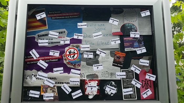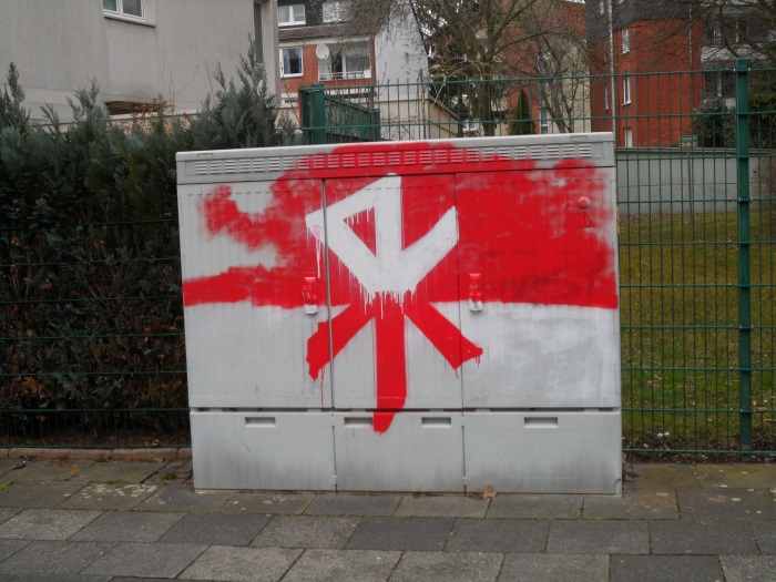 Fremdenfeindliche, rassistische und Nazi-Sticker haben Konjunktur. Im Köln Stadtteil Zollstock agitiert seit Jahren eine kleine, militante Neonazigruppe – sie nennt sich „Köln für deutschen Sozialismus“. Sie führte im Januar sowie im April 2017 in Köln zwei Demonstrationen durch und wurde auch im Verfassungsschutzbericht NRW eigens aufgeführt. In diesem Stadtteil, vor allem am Hönninger Weg, werden seit Jahren Hunderte von Neonaziaufklebern verklebt. Bis auf kleine Reinigungsaktionen, so vor fünf Jahren von Bezirksvertretern der Grünen und der Linken sowie in letzter Zeit von Vertreter*innen von Kein Veedel für Rassismus, wird dies offenkundig geduldet. Auch werden immer wieder gewaltsame Übergriffe dieser kleinen, als gewaltaffin geltenden Neonazi-Gruppe gegen junge Menschen aus Zollstock „intern“ beschrieben. Zu Anzeigen kommen diese bekannt gewordenen körperlichen Angriffe jedoch nicht. Das System der Einschüchterung funktioniert offenkundig gut.