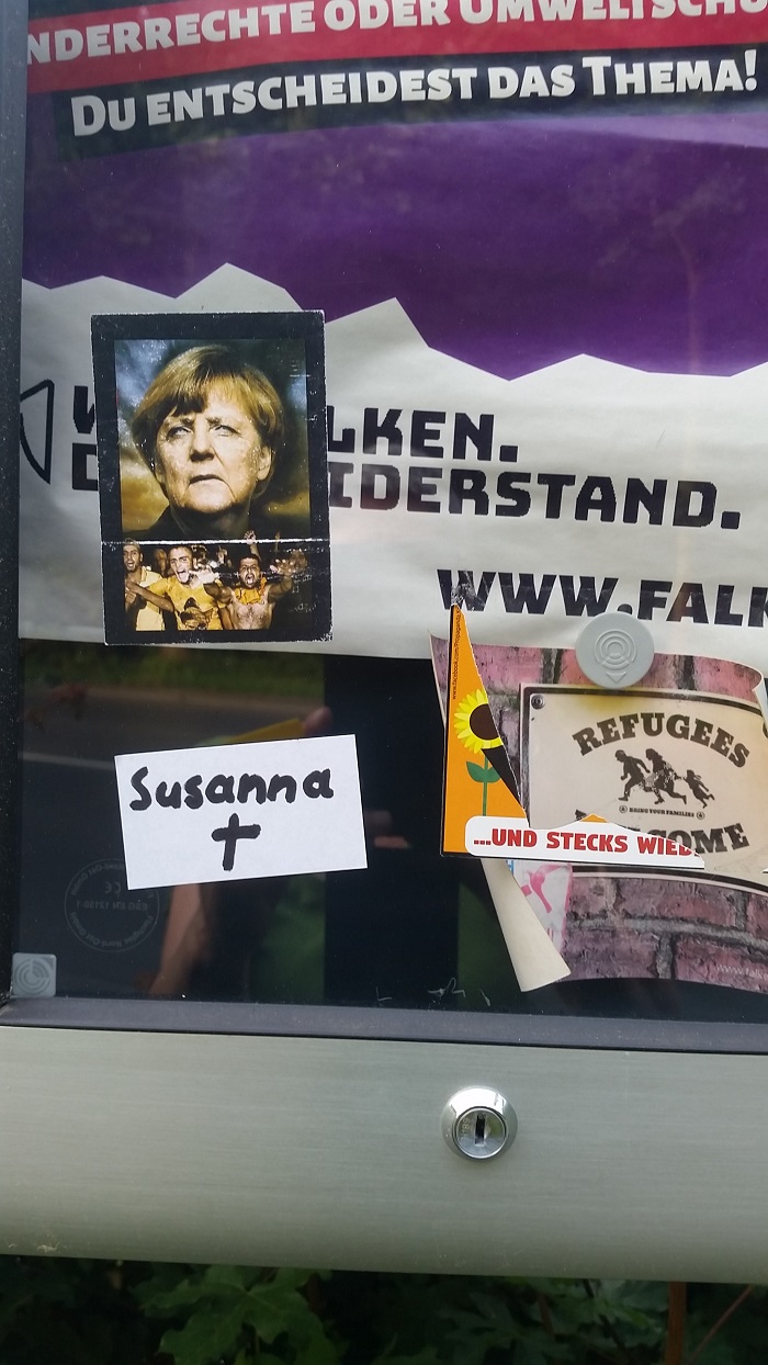 In Köln, insbesondere im „randständigen“ Kölner Westen – in den Stadtteilen westliches Ehrenfeld, Ossendorf, Bickendorf, Mengenich und Bocklemünd – werden seit Monaten Hunderte von ausländerfeindlichen und rassistischen Aufkleber verklebt. Es ist offenkundig, dass die Straftäter in diesen Stadtteilen wohnen. Einzelne Mitglieder von Kein Veedel für Rassismus Köln Nord haben diese Aufkleber immer wieder entfernt. Insbesondere nach entsprechenden rechtsradikalen und ausländerfeindlichen Demonstrationen, etwa in Kandel, hat die Flut dieser zu Hass und Rassismus aufrufenden Aufkleber immer wieder stark zugenommen. Weiterhin sind in der Kölner Innenstadt immer wieder Sprühparolen entdeckt und dokumentiert worden, die sich unmittelbar gegen die Kölner Oberbürgermeisterin Henriette Reker richten. Henriette Reker war am Vorabend der Kölner Oberbürgermeisterwahl von einem Mann mit rechtsextremer Geschichte mit einem Messer schwer verletzt worden und überlebte nur mit großem Glück. Trotz dieses schwer traumatischen Erlebnisses übernahm sie das Amt der Kölner Oberbürgermeisterin. Eine Bonner Recherchegruppe hatte wenige Stunden nach der Tat die rechtsextremen Aktivitäten des Täters dokumentiert– u.a. bei der Bonner FAP Anfang der 1990er Jahre sowie danach bei der, als FAP-Nachfolger geltenden, Gruppe „Berserker Bonn“; sein damaliger Spitzname soll „Messerstecher“ gewesen sein. Später legte die Gruppe weiteres dokumentierendes Material vor.