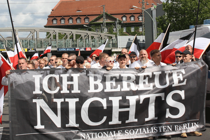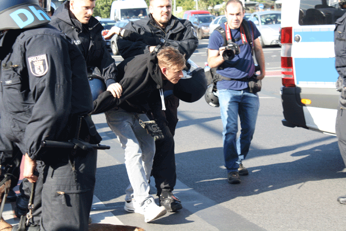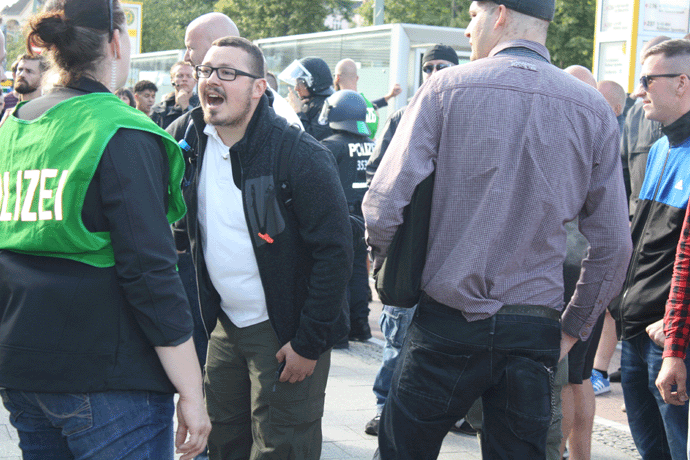Während die Neonazis in Spandau noch marschierten, hielten knapp 200 Rechtsextreme eine Spontandemonstration in Falkensee ab. Gegen 17 Uhr twitterte „Die Rechte Dortmund“: „Am Rande der Demo in Falkensee wurde offenbar gerade ein Büro der Grünen entglast. Mitleid eher gering“.