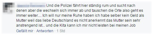 Dabei ist das Leben in Userin 1′ Darstellung wirklich schlimm – quasi organisierte Bandenkriminalität: Diese „Flüchtlinge“, gut organisiert und schlauer als die Polizei! Schön: Jetzt wird Themenhopping versucht (zum Thema „Mutter in Deutschland“…) – das funktioniert auf Belltower.news jetzt nicht so gut. Geht keiner darauf ein.