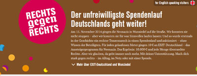 Rechts gegen Rechts (Facebook, Website, YouTube): Geniale Idee gegen Nazis von der Jugendinitiative Wunsiedel und EXIT: Ein rechtsextremer Aufmarsch wird durch Plakate und Gestaltung zum „Spendenlauf gegen rechts“ umfunktioniert. Die filmische Aufarbeitung machte die Aktion zum Social Media HitErleichterung (Humor), Aktivierung.