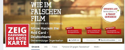 Show Racism The Red Card Deutschland (Website, Facebook, Twitter, YouTube) – besonders gegen Rassismus im Fußball, aber mit einem neuen Film und einer kommenden Broschüre auch zu Sexismus und Homophobie aktiv. Aktivierung, Statement, Emotionen, Informationen.