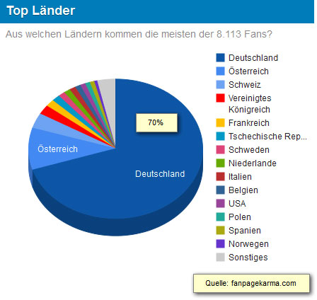 Blickt man auf die scheinbare Überblicksseite „Pegida Europa“, fällt auf: Die hohen Zugriffszahlen in den verschiedenen Ländern addieren sich nicht, die Seite hat „nur“ rund 8.000 Likes (immer noch zu viel) – sie vermuten nun wohl schon, warum. Ein Blick auf das Tortendiagramm bestätigt: