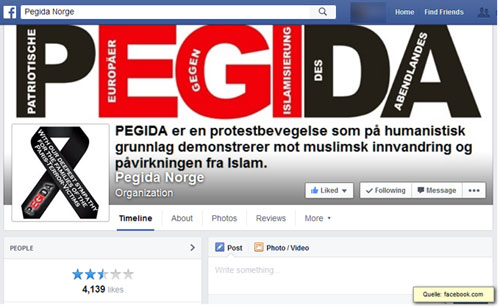 Ähnlich ist der Trend bei „Pegida Norge“ aus Norwegen. Hier kommen immer noch 34 Prozent der FB-Fans aus Deutschland. Aber: Der größte Teil, 41 Prozent kommt tatsächlich aus Norwegen. In den nördlichen Ländern Europas treffen die Pegida-Thesen offenbar die islamfeindliche Angstgefühlslage recht gut.