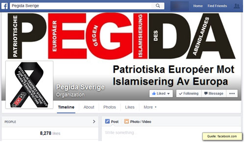 Auch in Schweden hat Rechtspopulismus Konjunktur: Die „Sverigedemokraterna“ erreichten bei der letzten Reichtstagswahl 12,9 Prozent der Stimmen und entsandten 49 Abgeordnete. Pegida Sverige hat über 8.000 Fans. Und tatsächlich: Hier kommen sogar über die Hälfte aus Schweden (54 %), aus Deutschland sind es diesmal „nur“ 29 Prozent. Auch aus den Nachbarländern Norwegen und Dänemark klicken hier einige auf „Gefällt mir“ – und sogar eine zählbare Menge von Menschen aus Thailand.
