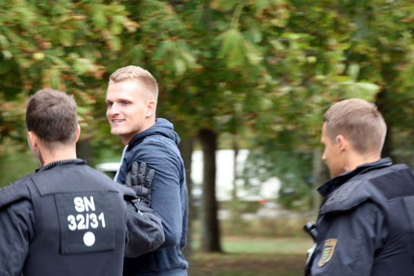 Neben Sellner waren so ziemlich alle bekannten Gesichter der sogenannten “Neuen Rechten” anwesend. IB-Österreich Co-Leiter Patrick Lenart, der rechtsextreme Burschenschafter und Leiter des rassistischen “Ein Prozent”-Netzwerks, Philip Stein, IB-YouTube-”Star” Alex Malenki, Freya von 120db, der Neonazi-Rapper Chris Ares und der völkische Autor Götz Kubitschek. Pegida-Initiator Lutz Bachmann wollte eigentlich auch kommen, blieb dann aber doch lieber zuhause. Am 20.08 hatte er noch gemeinsam mit Malenki beim wöchentlichen Pegida-”Spaziergang” für das Event mobilisiert.