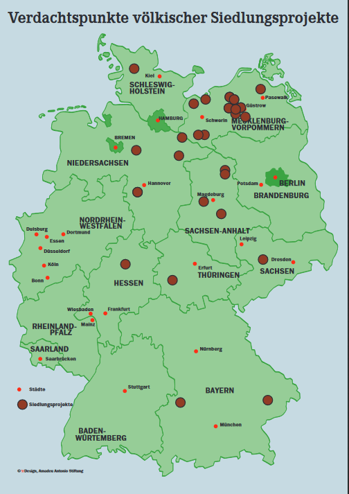 Endlich mal ungestört die rechtsextreme Ideologie ausleben, ohne mit kritischen demokratischen Nachbar*innen in Konflikt zu geraten, Kinder im Geistes des Nationalsozialismus großziehen oder sich gemeinsam auf den Zusammenbruch Deutschlands und das Ende der Demokratie vorbereiten – rechtsextreme Gruppierungen aller Art lieben Siedlungsprojekte als Rückkzugsräume, zur vermeintlichen Elite-Schulung und um völkisch-autoritäre Ideologie zu leben, in der der Einzelne nichts ist und die Gemeinschaft alles.