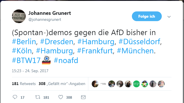 Screenshot vom Blog des Bündnisses “Kein Raum der AfD!” (25.09.2017)