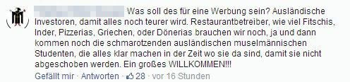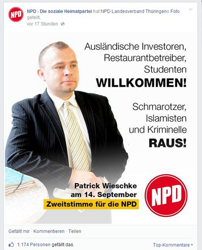 Ein NPDler, der ausländische Restaurantbesitzer, Studenten und Investoren willkommen heißt? Dies soll einer nicht-rechten Öffentlichkeit eine vermeintliche Differenzierung im Rassismus der NPD vorgaukeln – den durchschnittlichen NPD-Facebook-Freund verwirrt es: