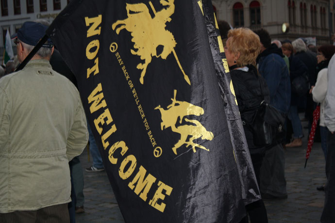 Am Montag gab es wieder eine Vielzahl an menschenverachtenden Fahnen (Quelle: BTN)