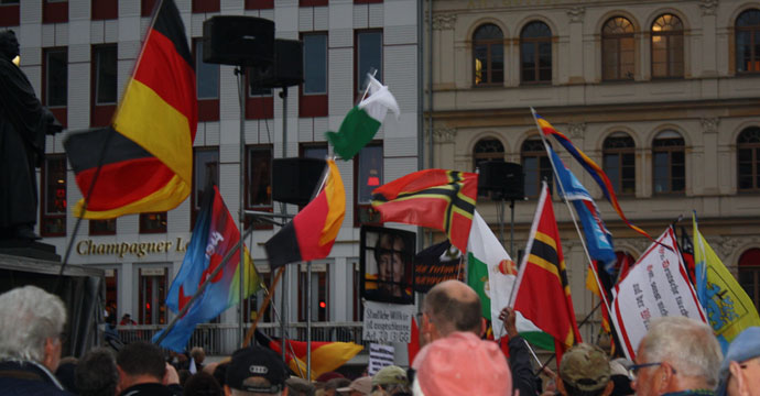 Auch Reichsbürger_innen laufen bei Pegida mit (Quelle: BTN)