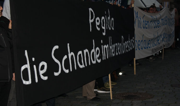 Besonders in diesen Zeiten ist eine klare Positionierung wichtig. Daher ist es ein kleiner Trost, dass sich auch am vergangenen Montag wieder zahlreiche Gegendemonstrant_innen in Hör- und Sichtweite zur Pegida-Kundgebung versammelt haben.