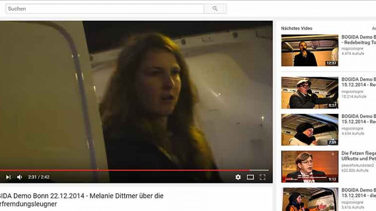 Da ist zuvorderst Melanie Dittmer, die viele Versammlungen anmeldete und leitete und. Redebeiträge hielt. In Düsseldorf sind mehrere Rednerinnen aufgetreten, u.a. Ariane Meise (Kreisvorsitzende NPD-Kreisverband Rhein-Sieg). In Köln war das Spektrum eher „HoGeSa“-lastig, entsprechend traten auch die Frauen auf. In Duisburg sind Frauen auf den Demos kaum wahrnehmbar. Allerdings tragen sie bei den „Spaziergängen“ meist das Fronttransparent mit.