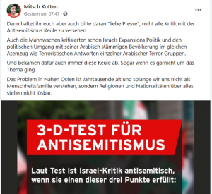 Auch Michael Kottwitz war an den Montagsdemonstrationen 2014 beteiligt. Heute teilt er Inhalte der rechtsalternativen Publizisten Boris Reitschuster, Gunnar Kaiser und Markus Krall. Auch Michael Kottwitz äußert sich immer wieder antisemitisch und antizionistisch.