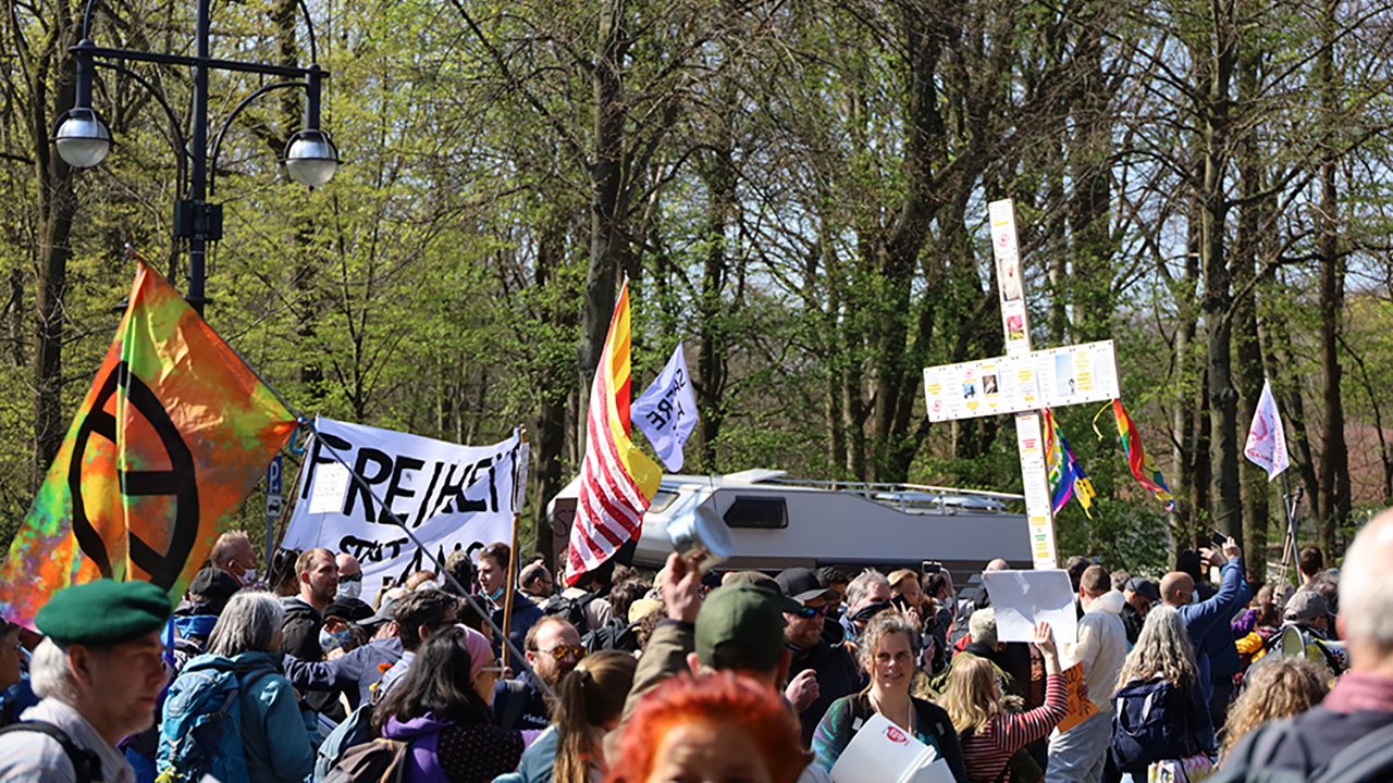 Es wird großflächig und emotional mobilisiert: Aus Hamburg, Ulm, München und Münster wird beispielsweise zu einer Reihe an Veranstaltungen unter dem Titel „Pfingsten in Berlin” aufgerufen. „Damit wir endlich alle frei sein können“, heißt es in einem Mobilisierungsvideo. Allerdings wurden fünf der angemeldeten Veranstaltungen nun wegen des Infektionsschutzes verboten. Sonderlich zu interessieren scheint das die Veranstalter*innen nicht.