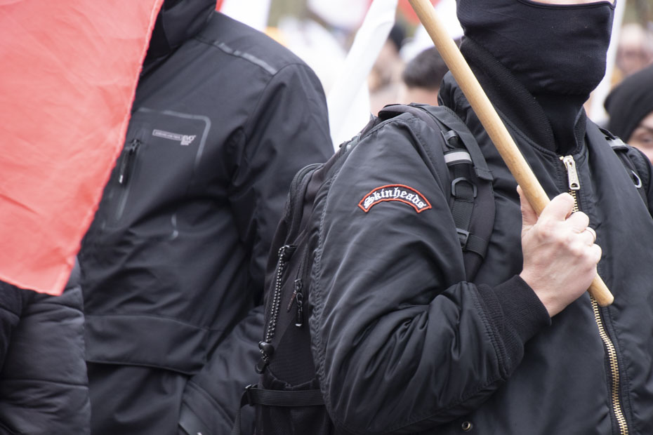 Die Transparente und die Symbolik in den Neonazi-Blocks waren eindeutig. Sie reichten von „White Lives Matter“, schwarzer Sonne bis hin zu „White Pride“-Symbolik. Die Neonazis waren beinahe ausschließlich mit Sturmhauben vermummt. Viele von ihnen scheinen einen Hooligan- oder Ultra-Bezug zu haben.