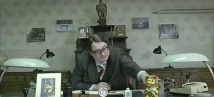 Ein derb-drastischer Spott-Spot mit dem Titel ?BRAUN IST SCHEISSE?. Ein junger Nazi in einer Klokabine will sich mit einem Hakenkreuz verewigen, kämpft mit einem schwarzen Filzstift, dessen Tinte ausläuft, tupft sich dabei versehentlich ein Hitlerbärtchen an die Oberlippe…