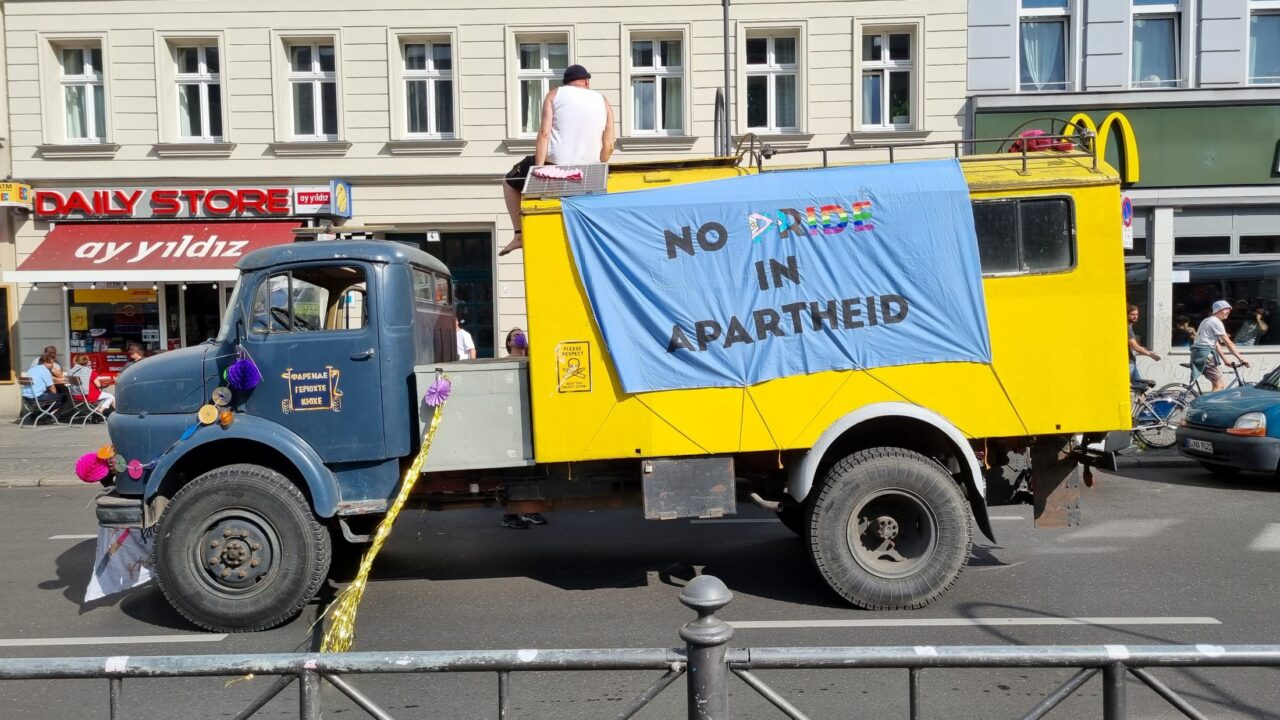 Zu den Unterstützern der Demo gehört das „Demokratische Komitee Palästina“, genauso wie Samidoun – eine Gruppierung die am 2. November in Deutschland endlich verboten wurde – eine Vorfeld- und Unterstützer*innenorganisation der Terrorgruppe PFLP, die für zahlreiche Anschläge in Israel verantwortlich ist. Anhänger von Samidoun hatten nach den Massakern und Vergewaltigungen vom 7. Oktober zur Feier des Tages Süßigkeiten auf der Berliner Sonnenallee verteilt. Finanziert werden die Organisationen, genau wie im übrigen die Hamas auch, vom Iran. Seit der islamischen Revolution 1979 wurden dort über 4000 schwule Männer an Baukränen erhängt. Für Teile der queeren Szene in Berlin offenbar kein Grund, Distanz zu wahren.