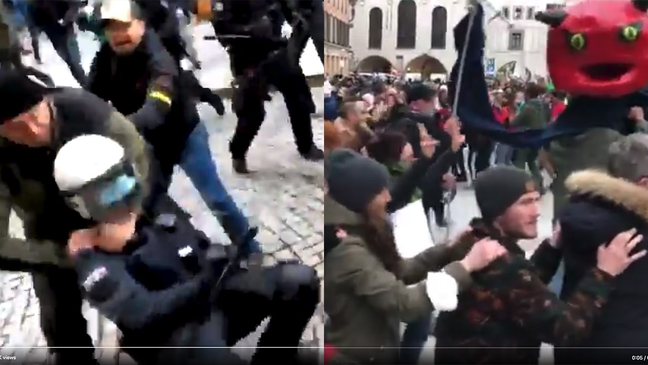 In München war die Stimmung offenbar fröhlicher: Angesichts über 70.000 Todesfälle bislang während der Pandemie wurde in der bayerischen Hauptstadt massenhaft Polonaise getanzt. Mehrere Kundgebungen waren angemeldet, die Polizei spricht von insgesamt über 2500 Teilnehmer*innen. Vor dem Münchener Rathaus formierten 500 bis 600 Demonstrierende tanzende Menschenketten mit engem Körperkontakt und weitgehend ohne Masken. Aus der Menschenmasse wurde skandiert: „Friede, Freiheit, Demokratie“.