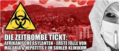 Die Facebook-Statusmeldung warnt: „Die Zeitbombe tickt!“ Über Asylbewerber würden Hepatitis C und Malaria ins thüringische Suhl eingeschleppt, es gäbe schon mehrere Fälle im Klinikum, berichtete laut mimikama.at eine rechtsextreme Wählergemeinschaft. Das Krankenhaus, dass als Quelle genannt wurde, dementierte den Sachverhalt allerdings schnell: „Die Stadt Suhl sieht sich derzeit mit geschürten Ängsten in der Bevölkerung und ausländerfeindlicher Hetze in sozialen Netzwerken wie Facebook etc., ausgetragen auf dem Rücken des SRH Zentralklinikums Suhl, konfrontiert. Aus dem Umfeld einer einschlägig bekannten Partei wird kolportiert, dass vermehrt asylsuchende ausländische Staatsbürger mit ansteckenden hochinfektiösen und lebensbedrohlichen Krankheiten im Suhler Zentralklinikum aufgenommen und behandelt würden. Damit wird bewusst eine akute gesundheitliche Gefahr für Leib und Leben der Suhler Bevölkerung und der Mitarbeiter sowie Patienten des Suhler SRH Zentralklinikums suggeriert und ausländerfeindliche Stimmungsmache betrieben. Dazu möchte das Klinikum klarstellen: Im SRH Zentralklinikum Suhl sind derzeit fünf asylsuchende ausländische Staatsbürger in Behandlung. Ihre Krankheiten sind bekannt, nicht ansteckend und gut therapierbar.“ (Pressemitteilung).