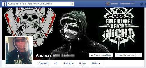 „Präsident“ Andreas H. hat eine Facebook-Seite, die aussieht, als wäre sie für Vorträge als Beispiel eines überzeugten, gewaltbereiten Neonazis entworfen worden. Ihm gefällt auf Facebook unter anderem der NPD-Europaabgeordnete Udo Voigt, aber auch der aktuelle NPD-Vorsitzende Frank Franz und Thilo Sarrazin, die „Junge Freiheit“, die offenkundig an rechtsextreme Kunden gerichtete Bekleidungsmarke „Kulturkampf“ und weitere rechtsextreme Bekleiung, rassistische „Schwarze Humor“-Seiten, „Nein zum Heim“-Seiten gegen Flüchtlinge oder Seiten wie die „Ahnen Gesellschaft“, die völkische Traditionen auf Facebook pflegt. Er mag die NPD, Die Rechte, die Münchner NPD-Tarnorganisation BIA – und natürlich Pegida und Lutz Bachmann. Dazu kommen Seiten aus dem Hooligan- und Hells Angels-Milieu.